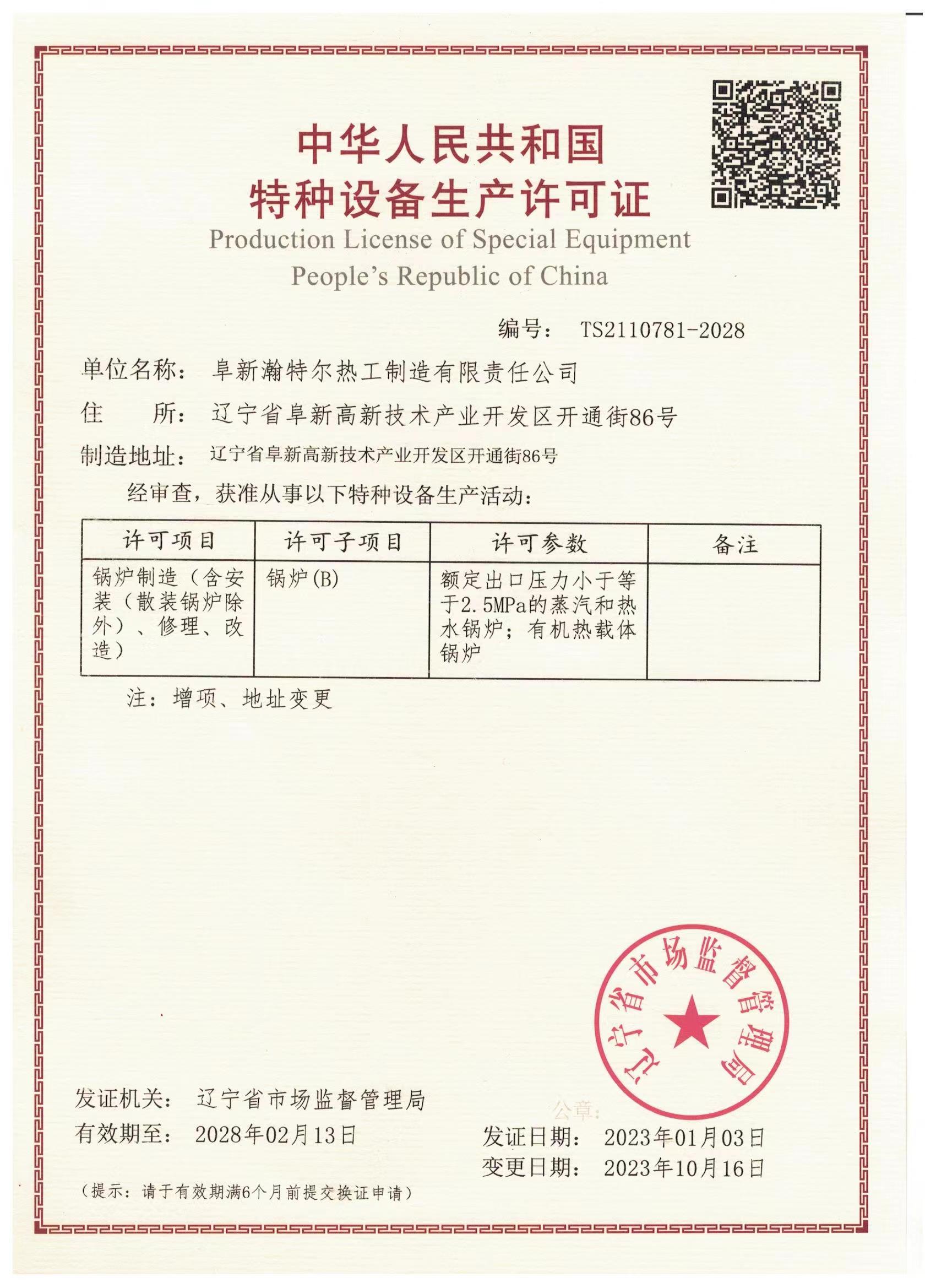特種設(shè)備生產(chǎn)許可證